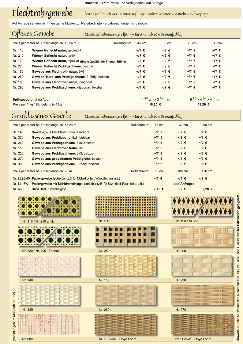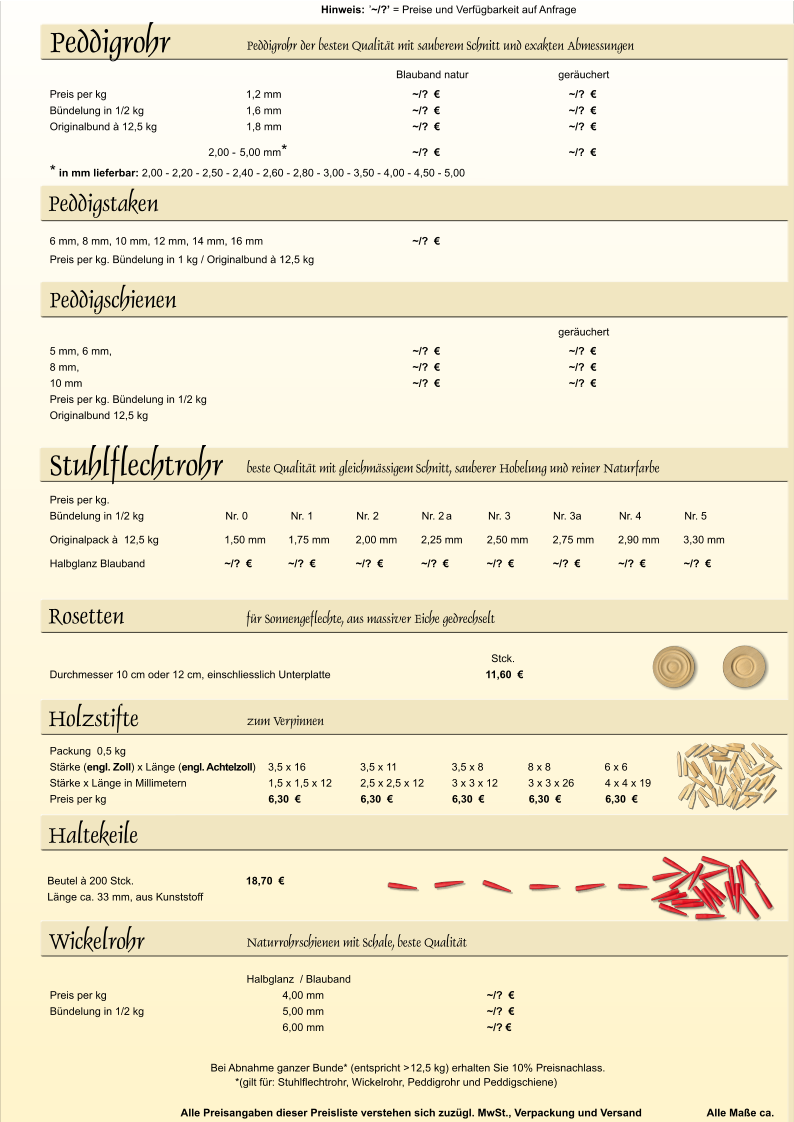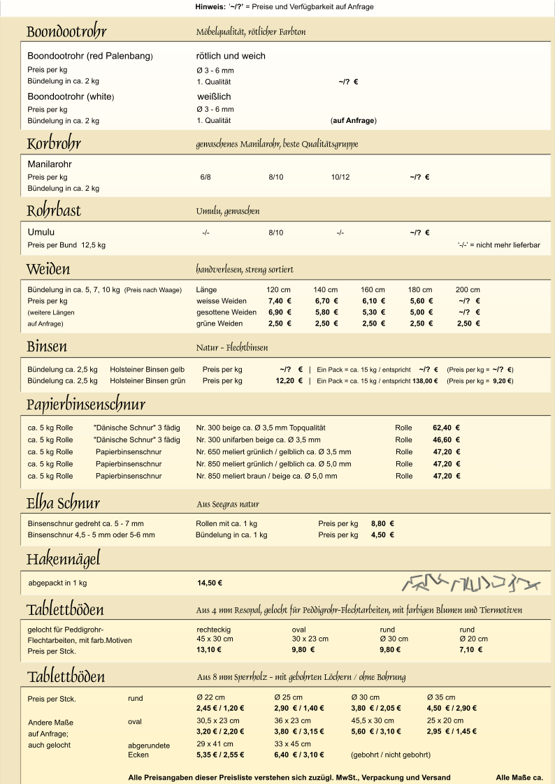 START | FLECHTMATERIALIEN...vergrössern Sie die Seiten unserer Preisliste durch Anklicken
